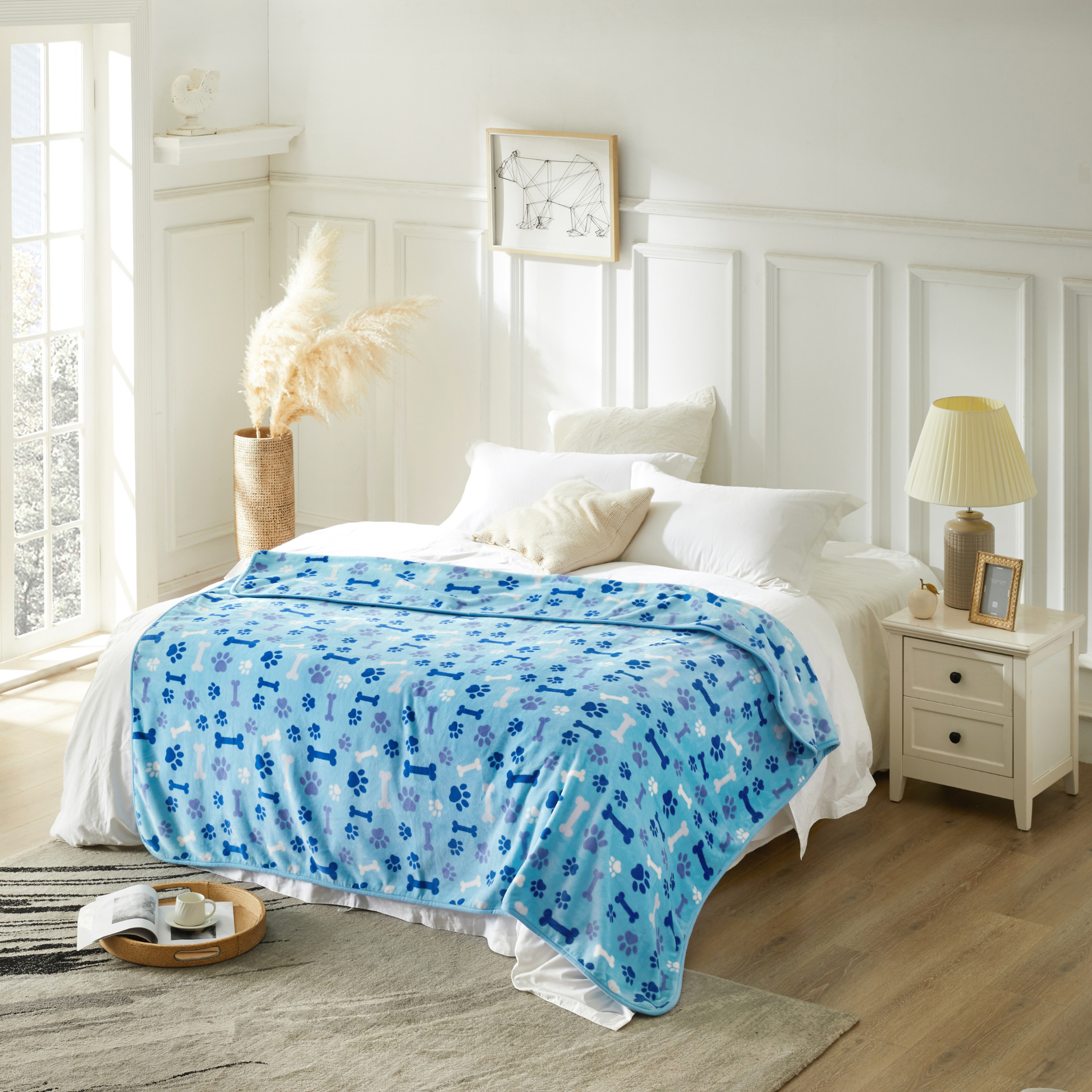 Soft & Cozy Paw Print Plush Bed Throw Blanket