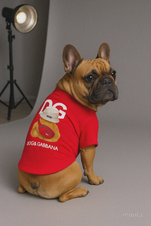 Designer-inspired and full of attitude, the “Dog & Gabbana” T-shirt is a must-have for pups with serious style. With its bold red color, playful teddy bear graphic, and luxury logo twist, this tee is all about turning heads at the dog park, on the sidewalk, or even in selfies. Made from a soft poly/cotton blend, it’s breathable and cozy—perfect for everyday wear or strut-worthy moments. Whether your dog’s personality is chill or cheeky, this tee brings out their inner fashion icon.